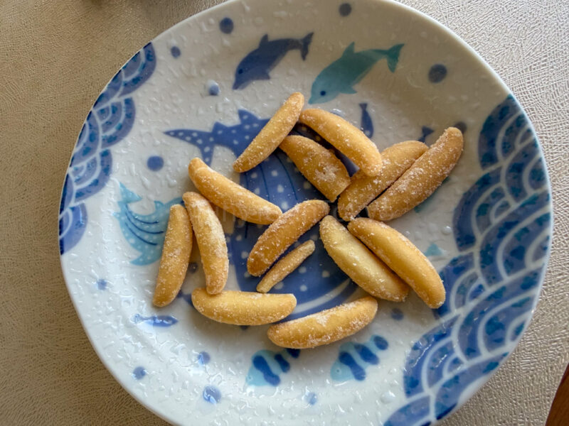 These small, banana-shaped rice crackers are crunchy and delightful, and have a 120 year history in Osaka.